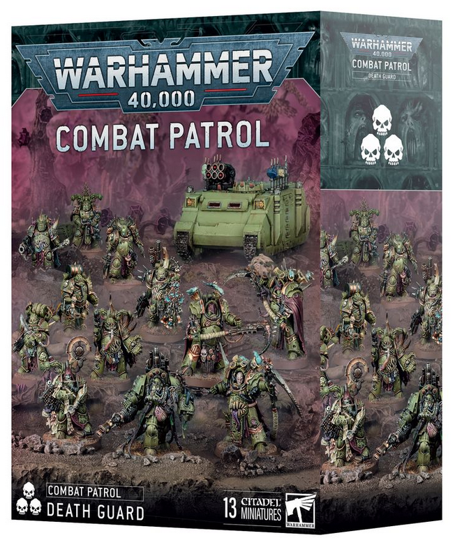 This box contains 13 plastic miniatures that represent a complete Maggot Lords force for use in Combat Patrol games of Warhammer 40,000. It's an ideal way to start a Death Guard army or easily add to an existing collection, and save money compared to buying the contents separately.