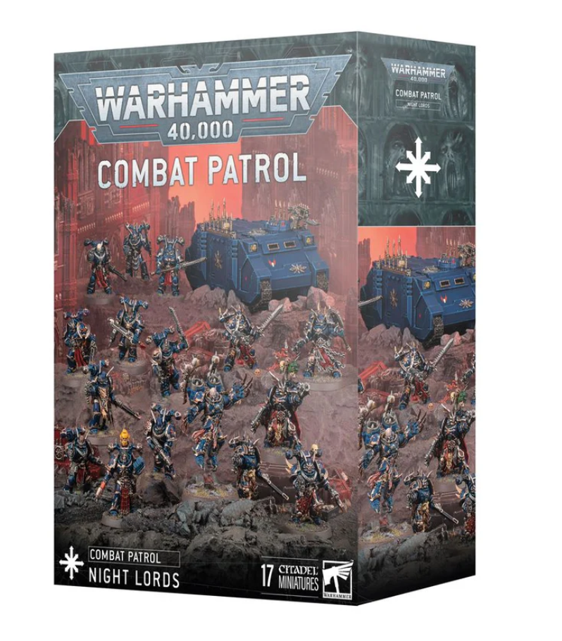 This packed box is the perfect way to start a new Night Lords-themed Chaos Space Marines collection – or expand an existing army – and save money compared to buying the kits individually. This army is led from the front by a Chaos Lord with Jump Pack, a melee powerhouse eager to get stuck in. The core of the force is composed of Legionaries, versatile line troops just as capable of taking vital objectives as unleashing devastating firepower. A unit of Chosen brings thousands of years of experience to the fight, along with powerful melee weapons. The Chaos Rhino will get one of your units where they need to go in relative safety, making this force surprisingly mobile. These 17 multipart plastic miniatures represent a complete Chaos Space Marines force for use in tight, tactical Combat Patrol games of Warhammer 40,000. The rules for this Combat Patrol are available as a free download on the Warhammer Community website. This boxed set is only available while stocks last.