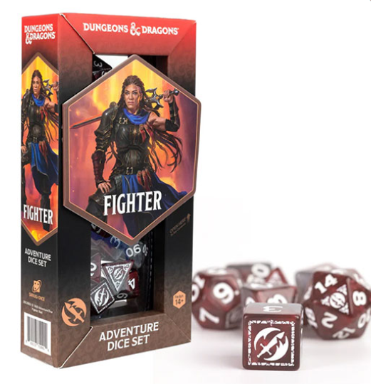 Crafted in red, this 14 piece dice set embodies the unyielding spirit of the Fighter. With a specific number of dice tailored to suit the needs of this battle-hardened class, these dice are perfect for rolling critical hits and smashing through enemy defenses. Whether you're leading the charge or holding the line, these dice will bring your character to life with every roll.