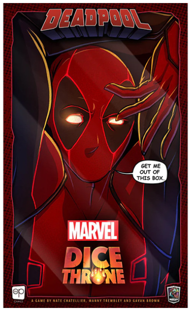 Marvel X-Men Dice Throne – Deadpool Expansion is an expansion of the fast-playing, dice-rolling combat game that puts players in the role of Deadpool, with his own set of dice, player board, and unique deck of cards. Attack your opponents and activate abilities such as Fiesta, Mutant Healing, and Finger Guns. Use dice rolls to accumulate combat points, and spend them on action cards that allow for ability upgrades. Deadpool is compatible with the entire Dice Throne ecosystem. This expansion requires an additional Dice Throne hero or Coop expansion to play.