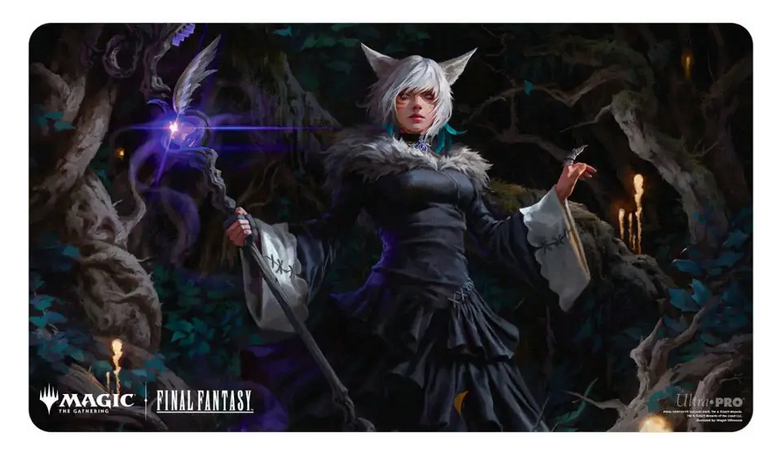 Playmats featuring popular Magic: The Gathering — FINAL FANTASY artwork. Made with a soft fabric top to reduce damage to cards during play and a non-slip rubber backing to keep the playmat from shifting during use, playmats enhance the gameplay experience. With dimensions of approximately 24 in. x 13.5 in., a playmat also makes an excellent oversize mousepad for home or office. • Officially licensed Playmat for Magic: The Gathering — FINAL FANTASY • Features exclusive artwork for Magic: The Gathering — FINAL FANTASY • Measures approximately 24 in. x 13.5 in. and lies flat • Soft fabric top helps protect cards during gameplay • Non-slip rubber backing keeps the playmat from shifting during use
