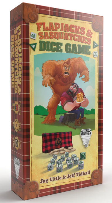 - Everything — 12 logging dice, your Sasquatch Die, 18 wooden nickels, and the complete rules of play — fits into a buffalo plaid, zipper pouch with a leatherette sasquatch emblem.