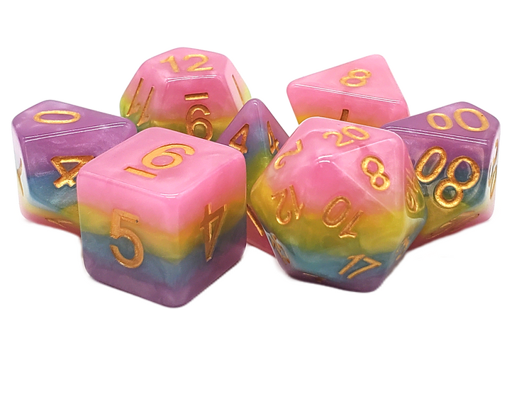 - One of each: d4, d6, d8, d10, d10 (00-90), d12, d20