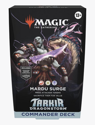 Choose your clan and battle your friends with Commander decks each featuring a legendary clan leader of Tarkir and a Spirit Dragon. Commander decks are ready to play right out of the box and contain everything you need to play Magic’s most popular multiplayer format.